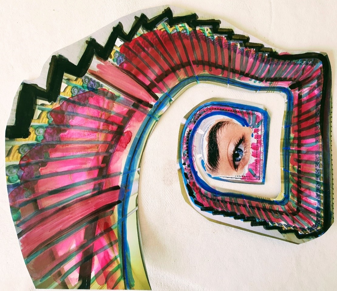 - Una altra manera de transformar-la seria fer-hi forats o enganxar-hi papers o altres imatges més petites al damunt. Si hi fem forats i mirem la imatge, els espais buits ens deixaran veure allò que hi ha al darrere.