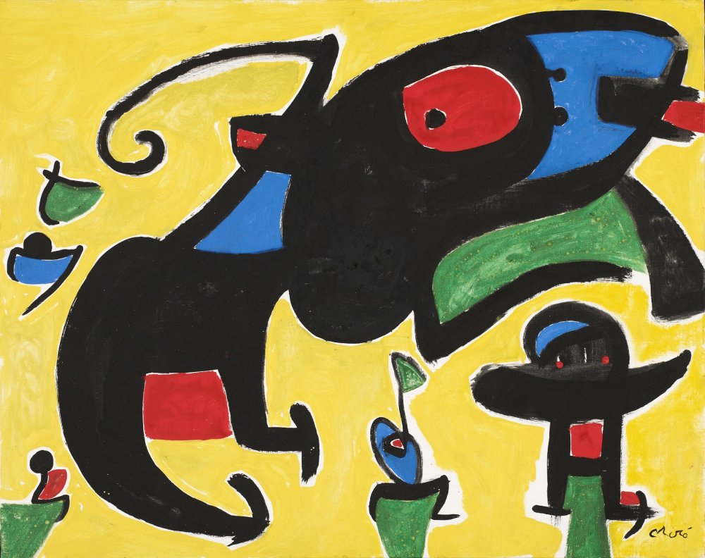 3/IV.78. / MIRÓ. / Personnages et oiseaux / avec un chien