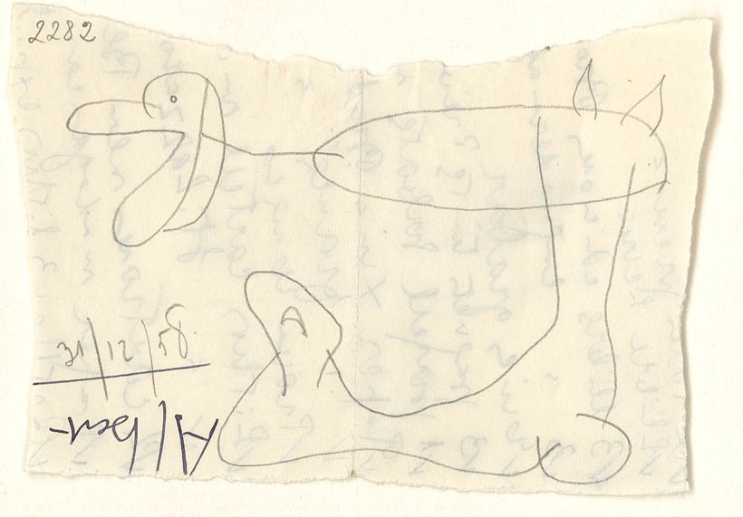 Dors:[Retalls] premsa / Llibre Leiris / 3 llibres edicions Bro / 3 [llibres] enquadernat[s] / Eines grabar / 3 paquets tintes Prév / 1 parell Sabates m / Paper Xina Brod / [Paper] francés [Brod] / Prova Unesco / Lithos cartell m / [Lithos] St. Lazzaro / 2 cartrons neu Be / Paper madagascar / [Rotllo] i 3 lithos exp.