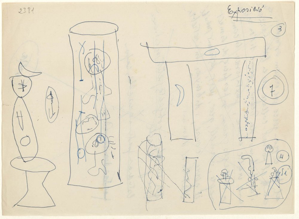 Dibuixos de Post de planxar, 1956; Gran palmera, 1956; Pòrtic, 1956; Gran personatge, 1956, i altres obres no identificades
