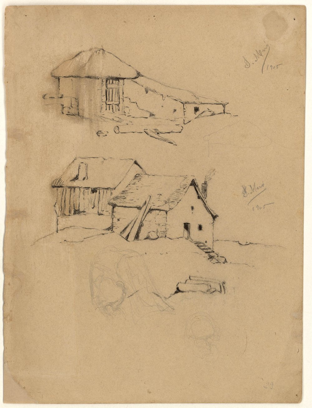 A la part inferior d'aquest dibuix hi ha esbossades dues cares amb llapis grafit.