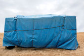 L’exposició de fotografies de la Rosa Puig mostra dues sèries de 2010: Embolicats i Sense títol. A la primera, apareixen les gandules de la platja de Tossa de Mar embolicades amb lona blava al final de temporada i a l'altra, els tendals blancs del Mercat de Sant Antoni plegats a terra. Ambdues sèries evoquen el concepte de “plegar” i alhora al·ludeixen a dues conegudes sèries monocromes de Joan Miró.