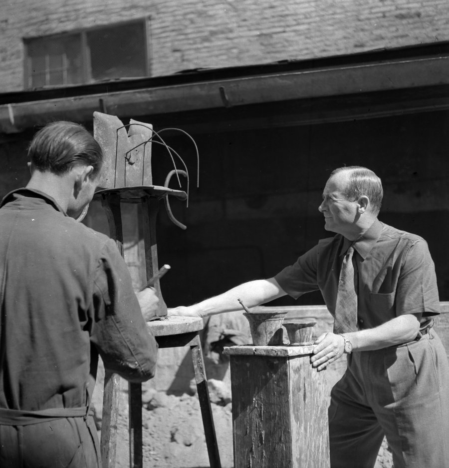 A mitjan anys quaranta, Joaquim Gomis, amic de Joan Miró i fotògraf amateur, va visitar la Foneria Gimeno amb l'artista. A la foneria, Gomis va trobar material al·lusiu al culte als líders de la dictadura franquista i restes d'etapes artístiques anteriors a la República. Una espècie d'assemblage improvisat que Gomis va saber retratar amb fina ironia, tal com tocava en aquella època de restriccions de tota mena.