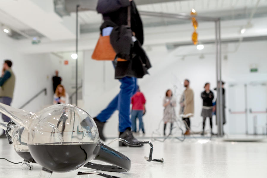 En el treball que Lara Fluxà presenta a l'Espai 13 es barregen dos materials aparentment oposats per les seves qualitats. D'una banda, la transparència i suposada fragilitat del vidre: sòlid, clar, net i antic. De l'altra, l'oli de motor usat: viscós, tèrbol, tòxic i associat a la societat de consum. Aquests dos materials estableixen una relació en què l'element fluid estressa i tensa el sòlid, el cristal·lí acull i conté l'obscur, i tots dos s'imposen mútuament les seves regles.