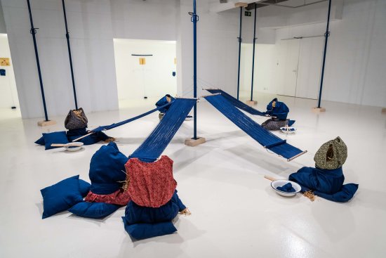 Vanesa Varela parteix del teler de cintura, una eina preindustrial, per reflexionar sobre els modes de producció, el concepte de feina i la generació o transmissió de coneixement. Aquesta eina mil·lenària connecta el cos de la teixidora amb la natura i reconcilia la producció tèxtil amb la mesura humana. Refutant el mode de producció industrial, és el cos el que imposa la seva forma i el seu moviment al teixit, per contrast a un mode de producció alienant i devastador.