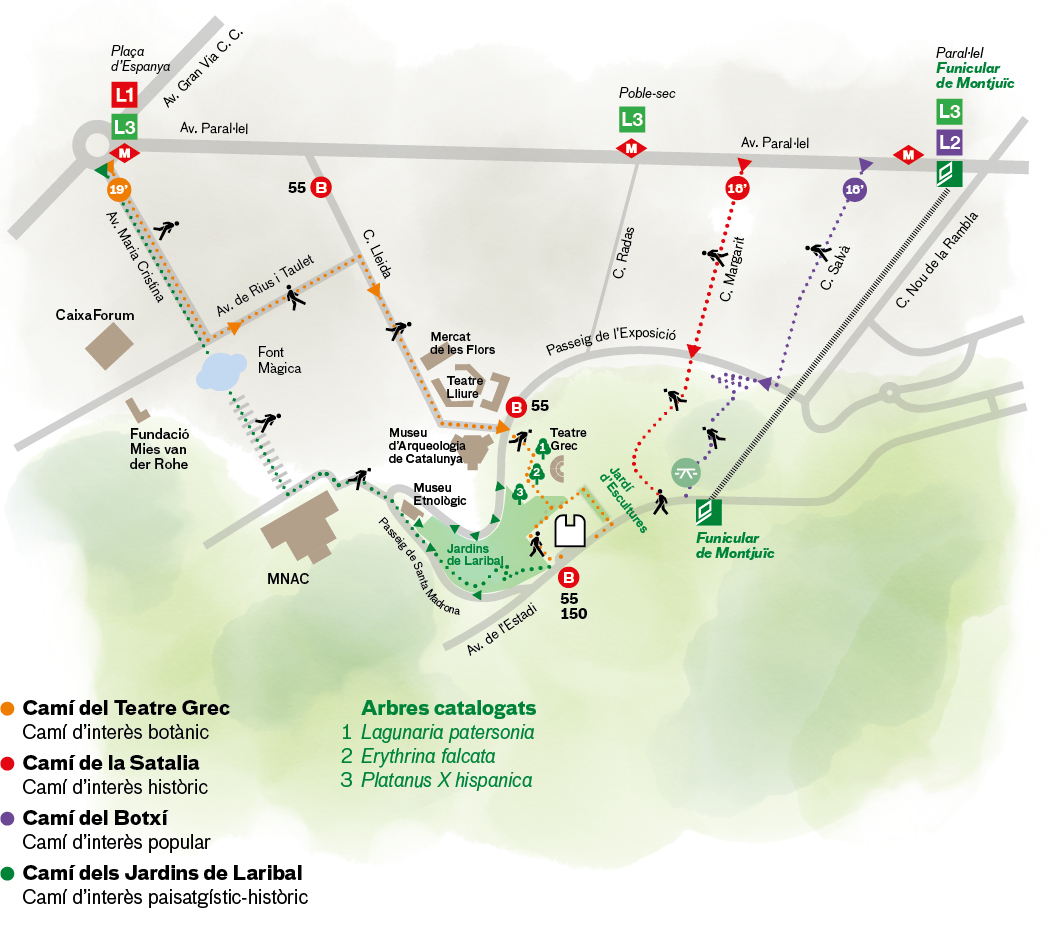 Ara us proposem recuperar alguns d’aquests camins per descobrir la muntanya de Montjuïc i arribar a la Fundació Joan Miró a peu. És una oportunitat per gaudir de l’art i la natura des del principi del vostre itinerari.