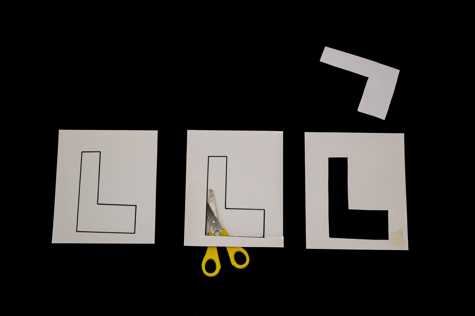 Materials: card stock or rigid cardboard that isn't too thick, pencil, scissors, masking tape, rollers, liquid paints.