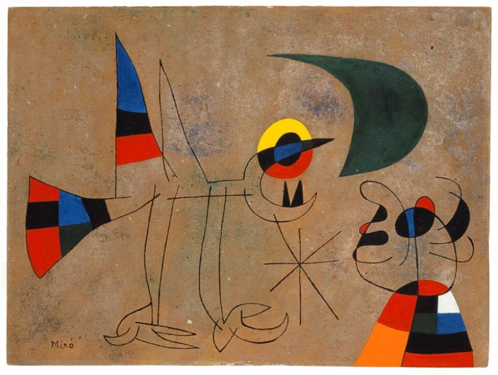 - Miró-Picasso / direcció del projecte: Marko Daniel, Emmanuel Guigon ; comissariat: Margarida Cortadella, Elena Llorens, Teresa Montaner, Sònia Villegas: Miró-Picasso / [dirección del proyecto, Marko Daniel, Emmanuel Guigon] ; [comisariado, Margarida Cortadella, Elena Llorens, Teresa Montaner, Sònia Villegas] = Miró-Picasso / [project direction, Marko Daniel, Emmanuel Guigon] ; [curatorship, Margarida Cortadella, Elena Llorens, Teresa Montaner, Sònia Villegas]. Margarida Cortadella (ed.) ; Teresa Montaner (ed.) ; Sonia Villegas (ed.). Barcelona: Fundació Joan Miró, 19 October 2023-25 February 2024 (Contents: The Barcelona legacy of Miró and Picasso / Marko Daniel, Emmanuel Guigon, page 24 -- Miró, Picasso: the boundaries of painting / Margarida Cortadella, Elena Llorens, Teresa Montaner, Sònia Villegas, page 28 -- 1917-1936 -- Meetings between Picassos Cubism (1910-1924) and Miró (1921-1927) / Christopher Green, page, 62 -- The Starry night: Picasso, Miróand the surrealists in 1924 / Georges Sebbag, page 86 -- Picassos challenge, Miró assassination / Robert Lubar Messeri, page 112 -- 1936-1948 -- This is the colour of their dreams: Miró and Picasso, poets gone wrong / Androula Michael, page 150 -- Picasso and Miró in the 1930s: revolution, destruction and conservation as antidotes to war / Jordana Mendelson, page 162 -- The presence of Jarry and Ubú in the work of Miró and Picasso / Maria Gonzalez-Menendez, page 182 -- Picasso-Miró, post-war lives, 1939-1948 / Victoria Combalía, pàgina 194 -- De lassassinat de la peinture à la céramique: Picasso, Miró and ceramics / Salvador Haro, Harald Theil, page 222 -- 1948-1973 -- Miró, Picasso: a monumental mythology / Thierry Dufrêne, page 250 -- Pablo Picasso and Joan Miró: the sovereign freedom of the late work / Brigitte Leal, page 270 -- List of works, page 304); p. 52