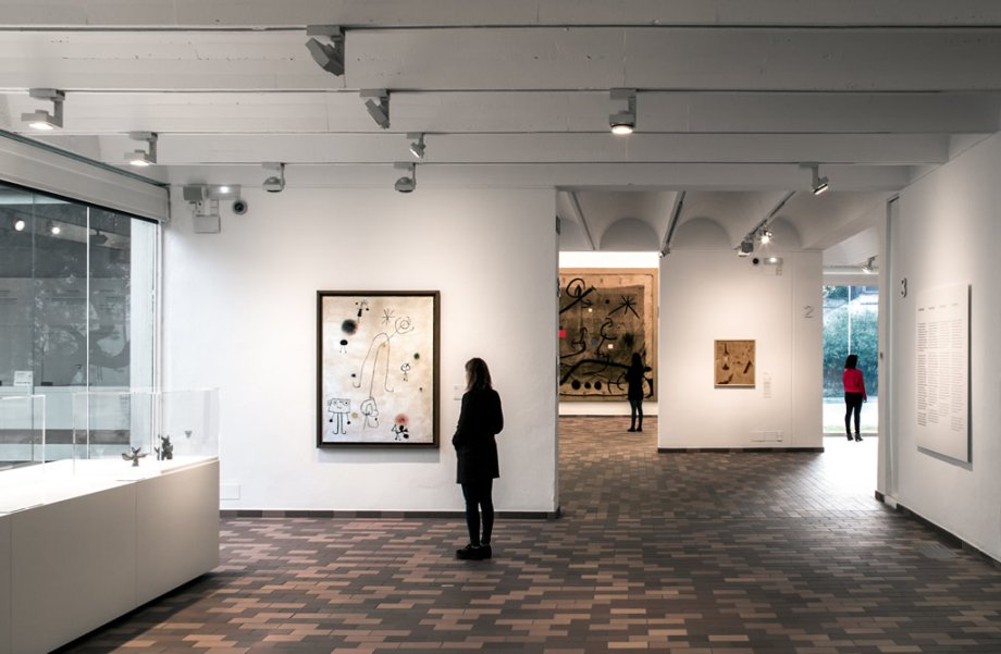 Nella collezione di opere di Joan Miró attualmente in mostra presso la Fundació si evidenziano aspetti come il rapporto di Miró con la terra, la volontà di superare la pittura convenzionale, il desiderio di anonimato, la violenza della guerra e la voglia di evasione, la poesia e il silenzio o l’antipittura.